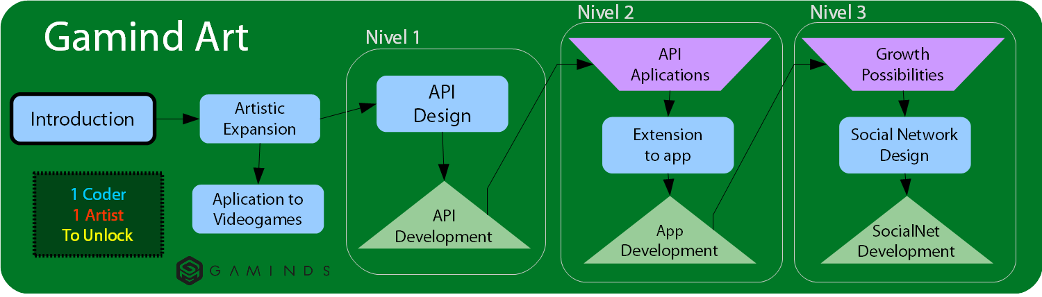 Production is divided into milestones, like in videogame development. This whole web is the item at the bottom left: Introduction (well, Presentación, too lazy to translate).